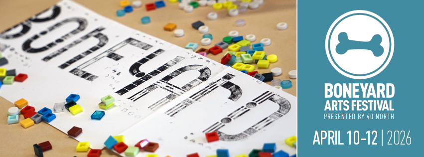 40 North invites local artists to submit work to be considered as the official signature image for the Boneyard Arts Festival. To enter, submit this entry form by Monday, January 26, 2026. The Boneyard Arts Festival official signature image is featured on all festival registration materials, posters, postcards, billboards, print and online advertising, and on the cover of the Boneyard Arts Festival Quick Guide that is distributed to all festival venues and throughout the community. In submitting artwork for consideration as the festival’s signature image, artists grant permission to 40 North to use the work on various promotional pieces and understand that a detail or section of the winning piece may be ultimately used. 40 North will work with the artist to ensure the integrity of the piece is respected while also developing effective marketing that features the image. Submission deadline is 11:59pm on Monday, January 26th. Produced by 40 North | 88 West, the Boneyard Arts Festival will take place April 10 – 12, 2026.