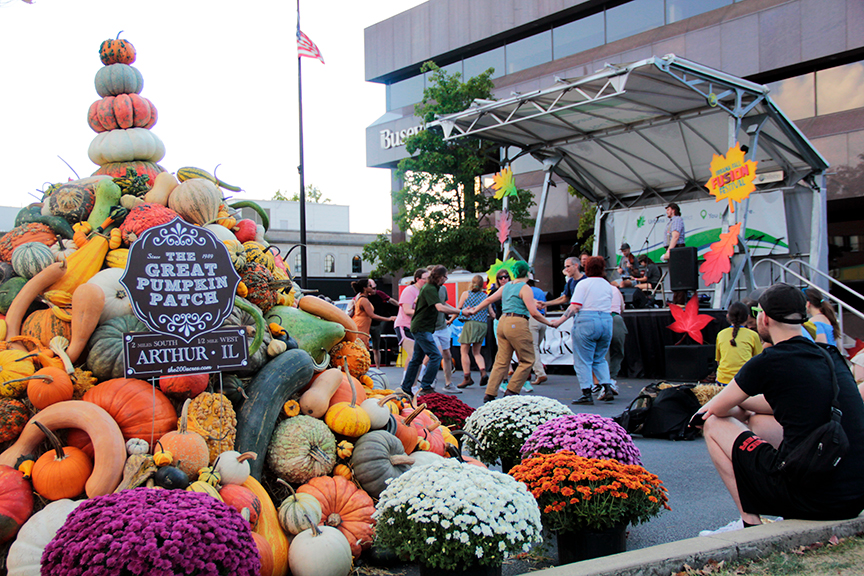 40 North and Urbana Arts & Culture Program are taking over downtown Urbana on Saturday, October 10, 2026 from 3-7pm for the fourth annual Urbana Fall Fusion Festival! Immerse yourself in fall fun as Race and Main streets are transformed with pumpkins, gourds and leaves—providing the perfect backdrop for fun photo ops! Enjoy FREE live music on the Fall Fusion stage and get inspired by watching live art demonstrations by local artists across a variety of mediums. Visit booths from community organizations for interactive activities for all ages. Stop in all the downtown businesses and restaurants for Urbana Fall Fusion Festival food specials and retail sales. Don’t miss the face painters, balloon artists, make and take crafts, and circus performers that are sure to keep everyone entertained for hours. Stay for the fire performance—a mesmerizing grand finale to this kickoff of the fall season!